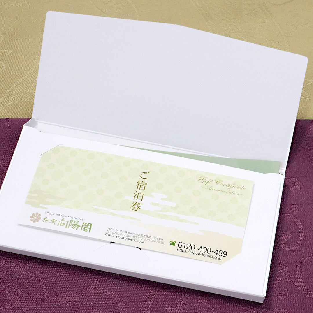 お世話になった方へのギフト、ご両親・ご友人へのプレゼントとしてご利用いただける兵衛向陽閣のご宿泊招待券です。
